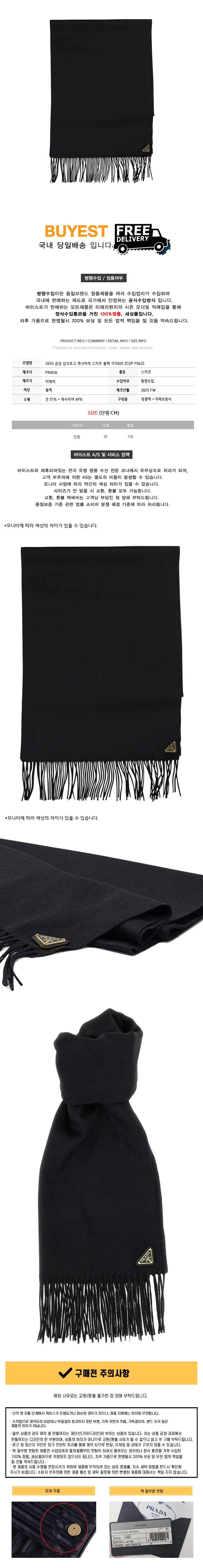 26SS 금장 삼각로고 캐시미어 스카프 블랙 1FS065 2COP F0632