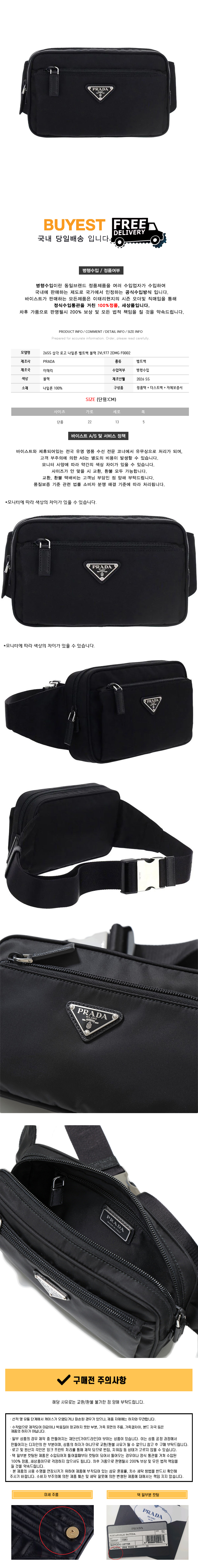 26SS 삼각 로고 나일론 벨트백 블랙 2VL977 2DMG F0002