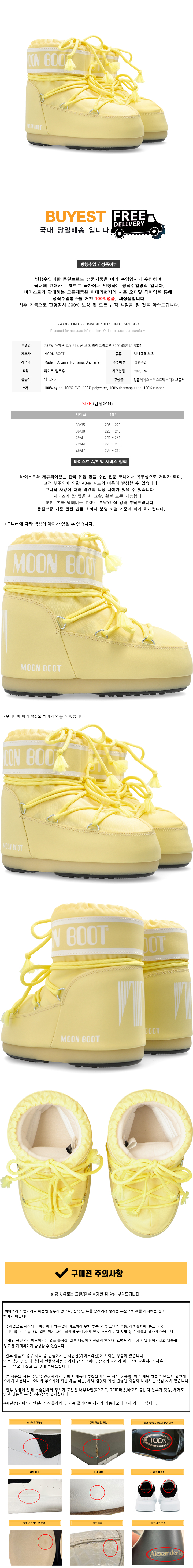 * 모 델 명 : 25FW 아이콘 로우 나일론 부츠 라이트옐로우 80D1409340 B021