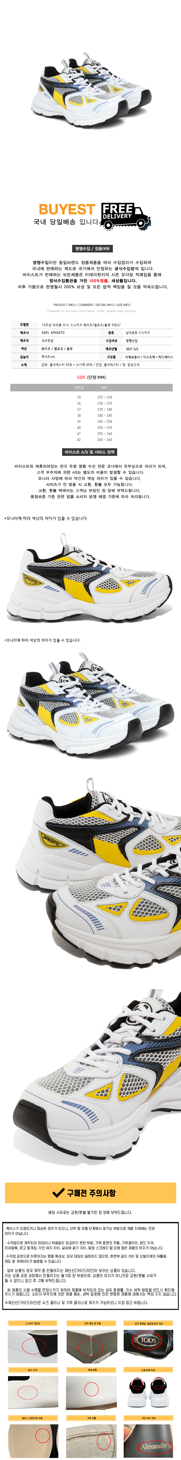 * 모 델 명 : 15주년 마라톤 러너 스니커즈 화이트/옐로우/블루 93027