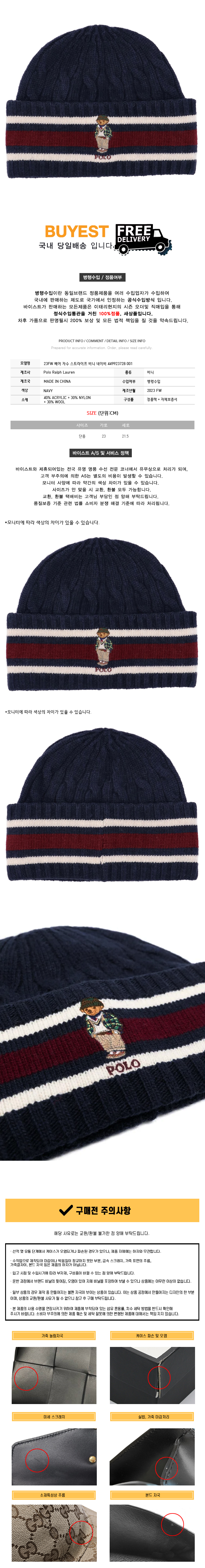 * 모 델 명 : 23FW 베어 자수 스트라이프 비니 네이비 449923728 001