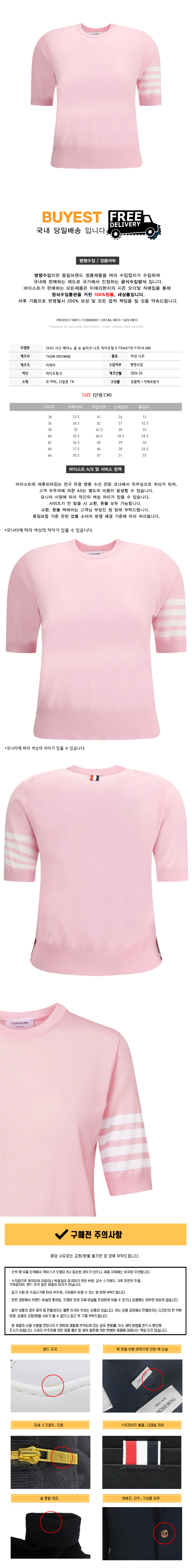 * 모 델 명 : 26SS 사선 메리노 울 숏 슬리브 니트 라이트핑크 FKA471B Y1014 680