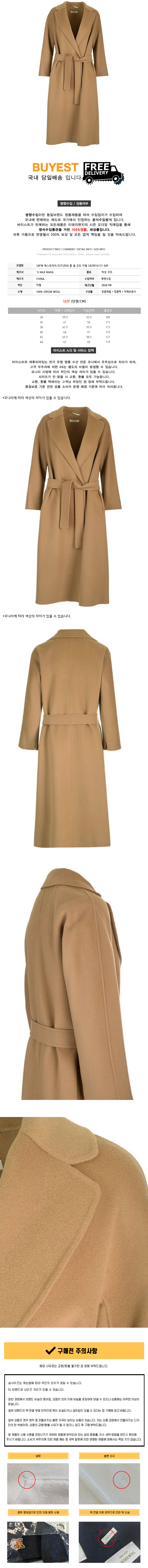 * 모 델 명 : 24FW 에스투리아 ESTURIA 롱 울 코트 카멜 2429016131 045