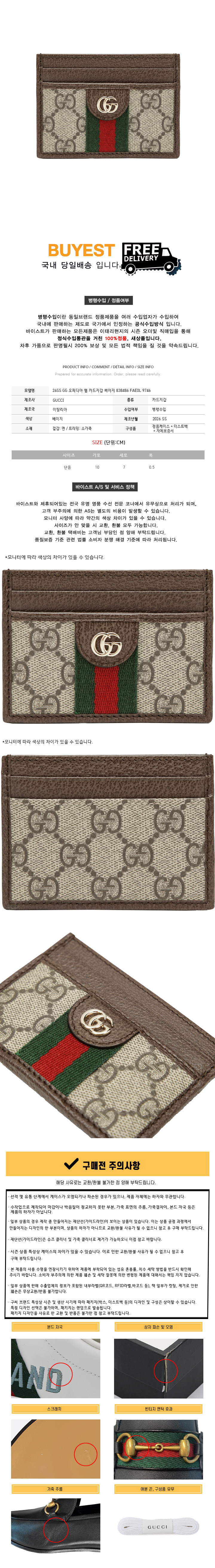 26SS GG 오피디아 웹 카드지갑 베이지 838486 FAE0L 9746