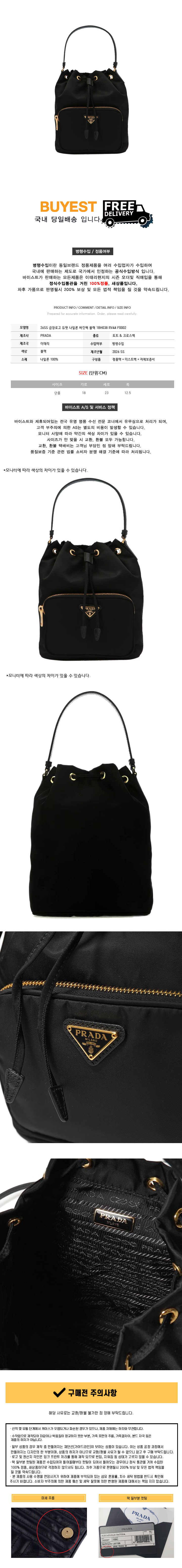 26SS 금장로고 듀엣 나일론 버킷백 블랙 1BH038 RV44 F0002