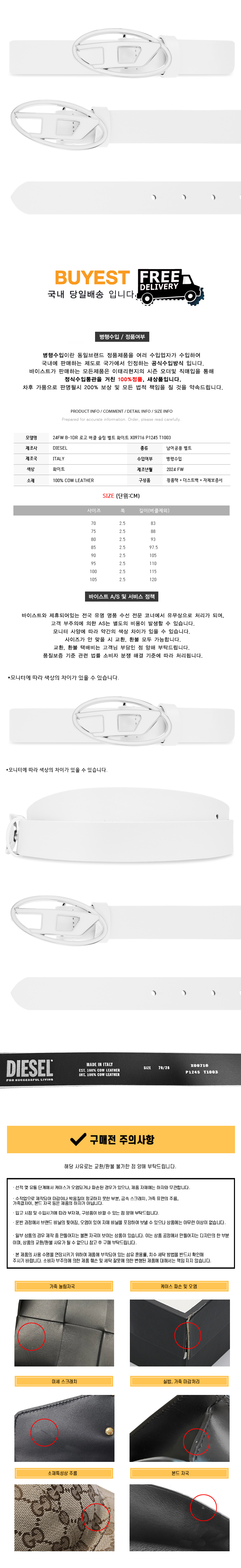* 모 델 명 : 24FW B-1DR 로고 버클 슬림 벨트 화이트 X09716 P1245 T1003