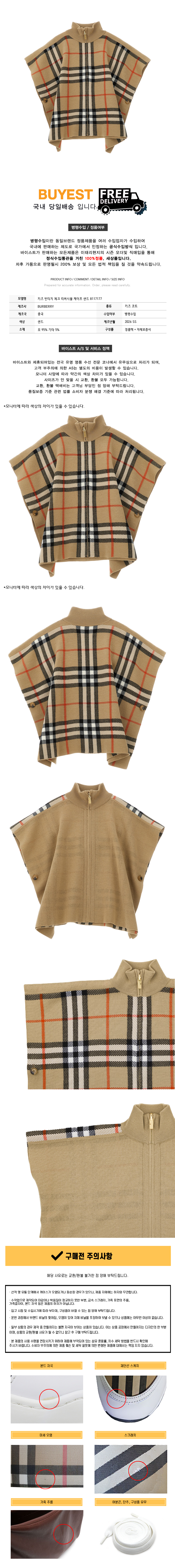 * 모 델 명 : 키즈 빈티지 체크 리버시블 케이프 샌드 8117177