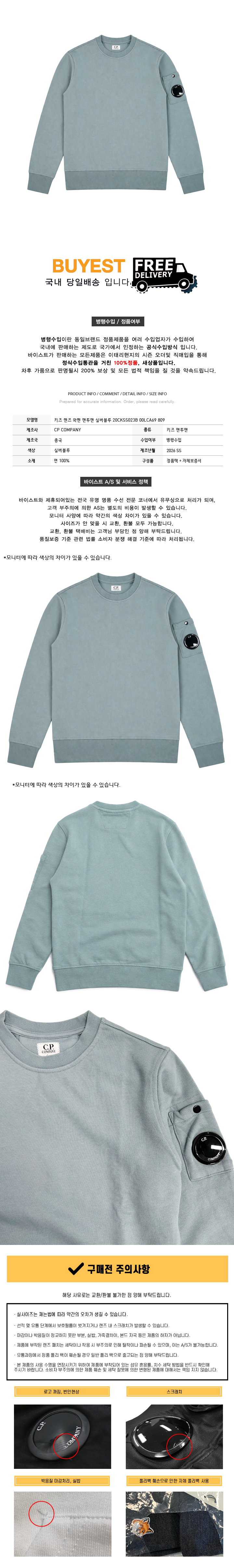 * 모 델 명 : 키즈 렌즈 와펜 맨투맨 실버블루 20CKSS023B 00LCA69 809