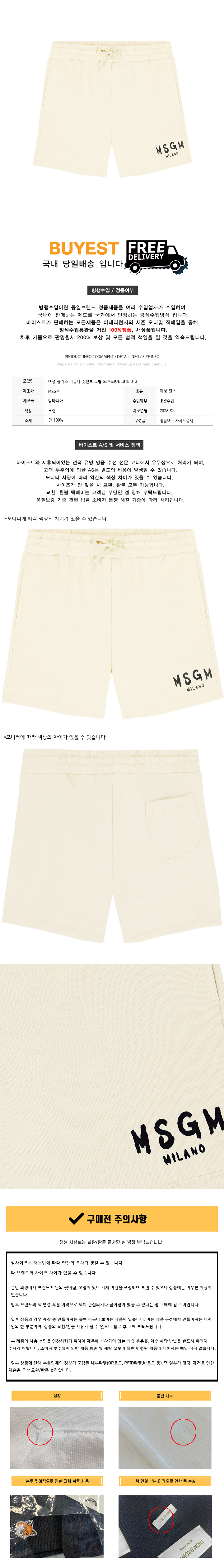 * 모 델 명 : 여성 플리스 버뮤다 숏팬츠 크림 S6MSJUBE018 013