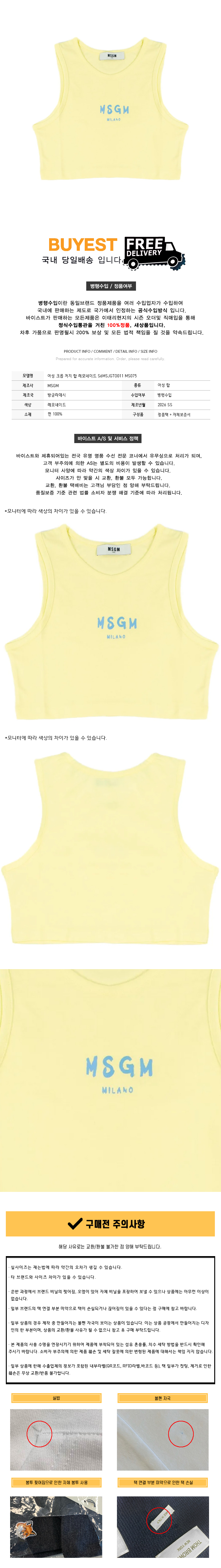 * 모 델 명 : 여성 크롭 저지 탑 레모네이드 S6MSJGTO011 MS075