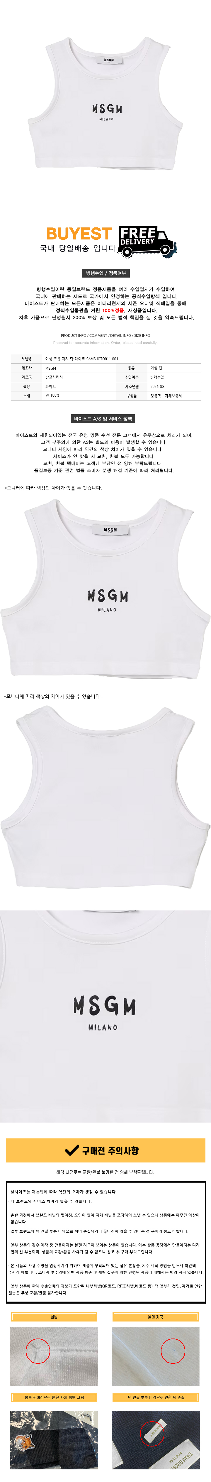 * 모 델 명 : 여성 크롭 저지 탑 화이트 S6MSJGTO011 001