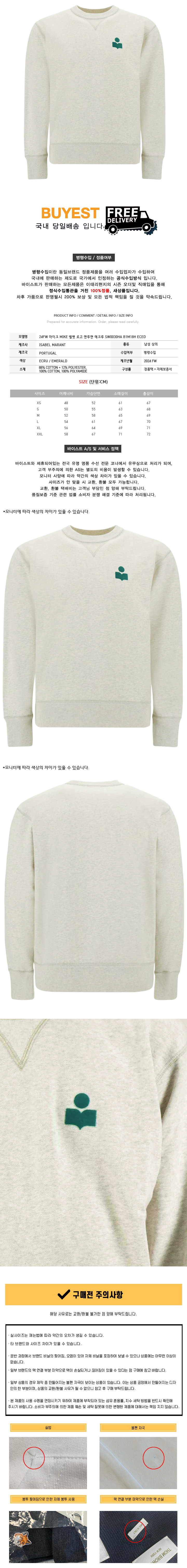 * 모 델 명 : 24FW 마이크 MIKE 벨벳 로고 맨투맨 에크루 SW0030HA B1M18H ECED