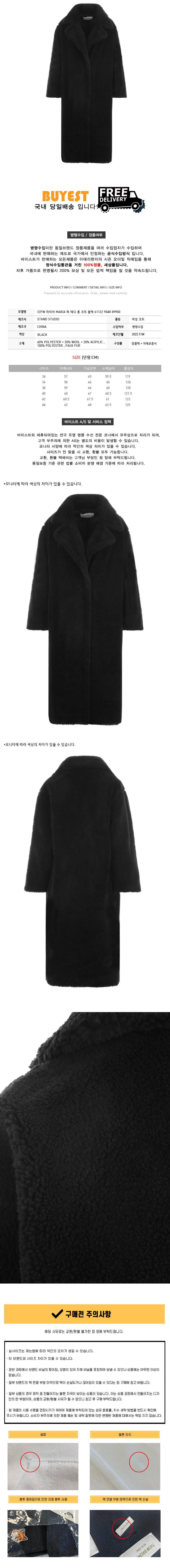 * 모 델 명 : 22FW 마리아 MARIA 퍼 테디 롱 코트 블랙 61122 9040 89900