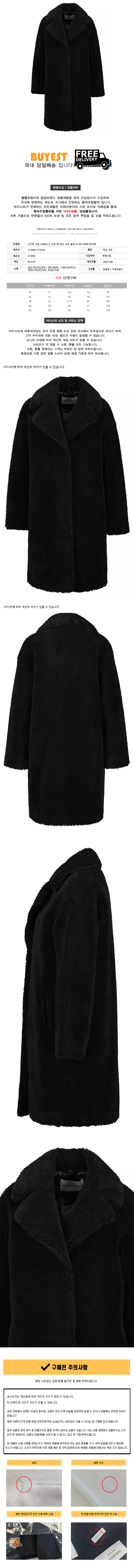 * 모 델 명 : 22FW 카밀 CAMILLE 코쿤 퍼 테디 코트 블랙 61303 9040 89900