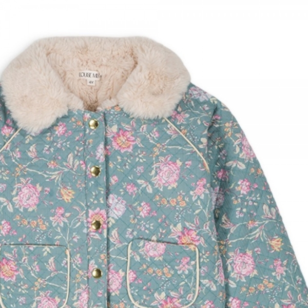 ◆키즈◆23FW 키즈 JASMINA 플로럴 패턴 폭스 퍼 패딩 자켓 블루 J0166 BLROS