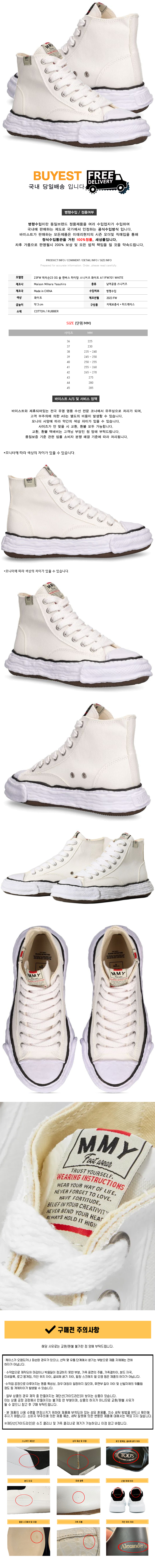 * 모 델 명 : 23FW 피터슨23 OG 솔 캔버스 하이탑 스니커즈 화이트 A11FW701 WHITE