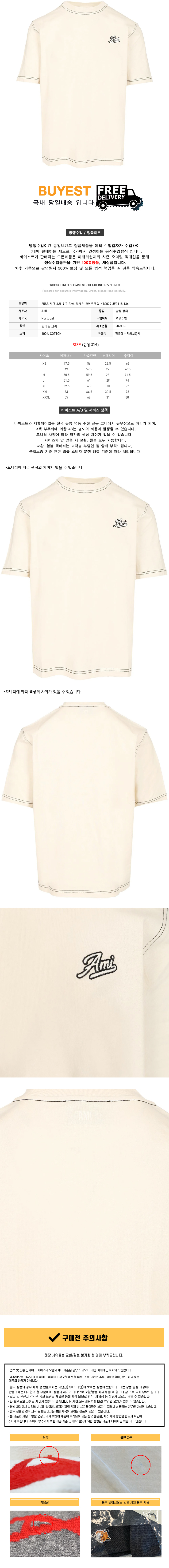* 모 델 명 : 25SS 시그니처 로고 자수 티셔츠 화이트크림 HTS029 JE0118 136