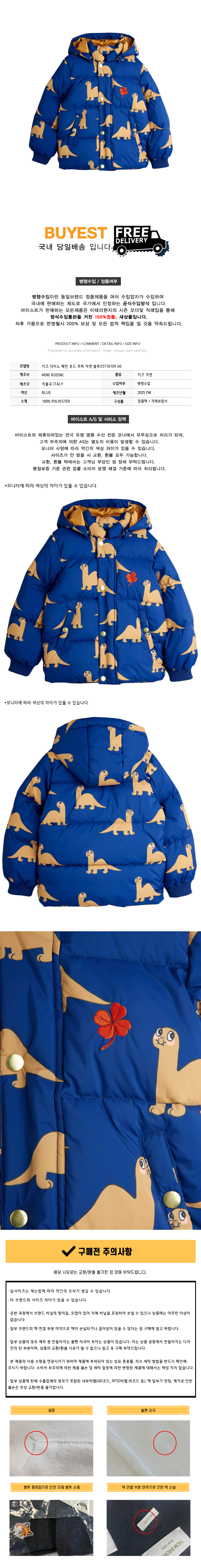 * 모 델 명 : 키즈 다이노 패턴 후드 푸퍼 자켓 블루 25710109 60