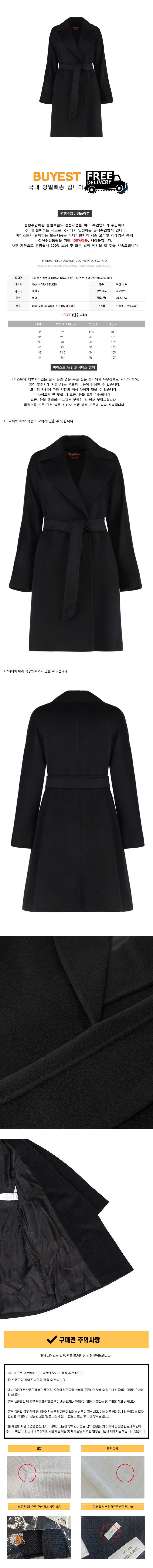 ◆당일◆25FW 드라벤나 DRAVENNA 벨티드 울 코트 블랙 2526016152 013