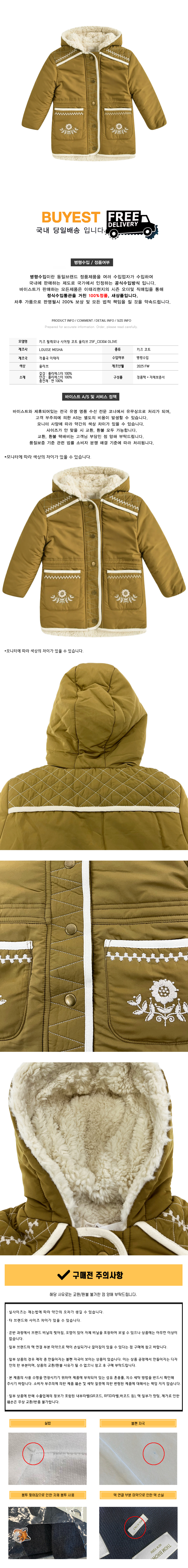 * 모 델 명 : 키즈 필레모나 시어링 코트 올리브 25F_C0304 OLIVE