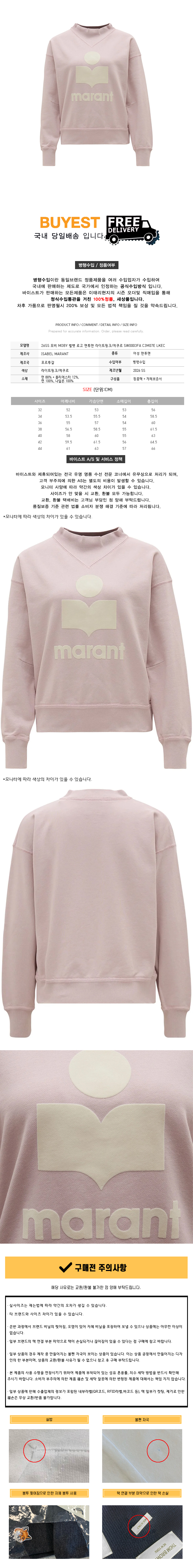 * 모 델 명 : 26SS 모비 MOBY 벨벳 로고 맨투맨 라이트핑크/에쿠르 SW0003FA C3M07E LKEC