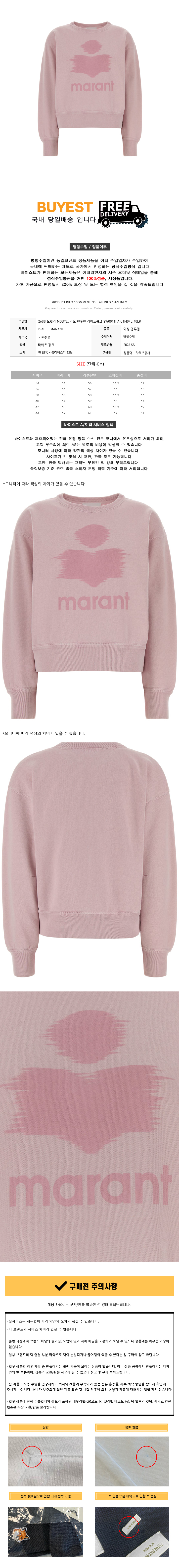 * 모 델 명 : 26SS 모빌리 MOBYLI 기모 맨투맨 라이트핑크 SW0011FA C1M04E 40LK