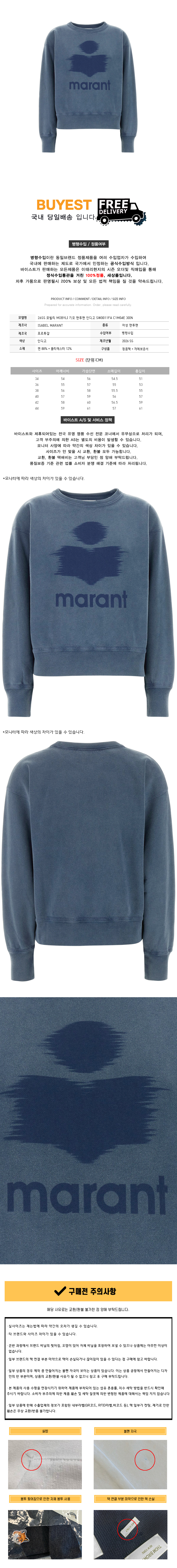 * 모 델 명 : 26SS 모빌리 MOBYLI 기모 맨투맨 인디고 SW0011FA C1M04E 30IN