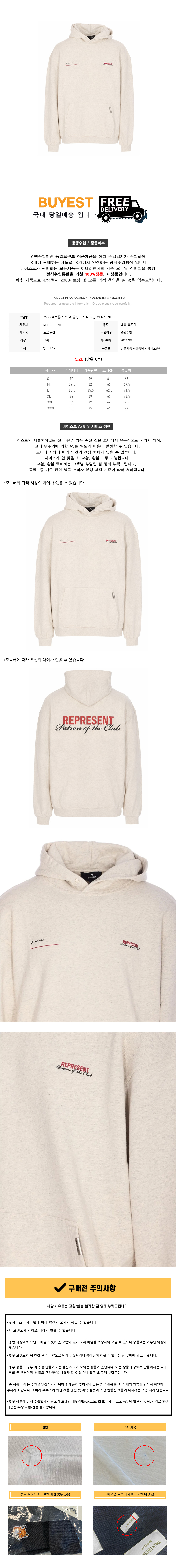 * 모 델 명 : 26SS 패트론 오브 더 클럽 후드티 크림 MLM4270 30