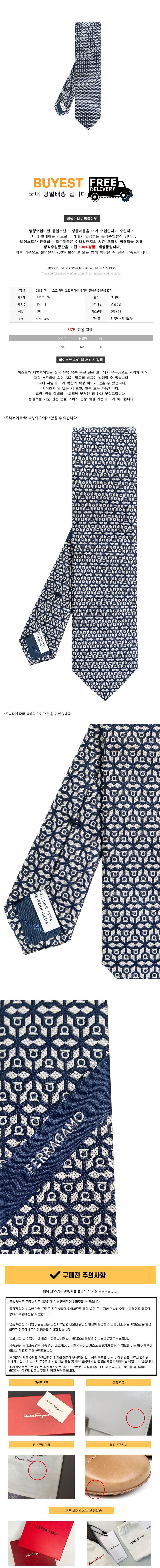 * 모 델 명 : 26SS 간치니 로고 패턴 실크 넥타이 네이비 35-0943 0768437