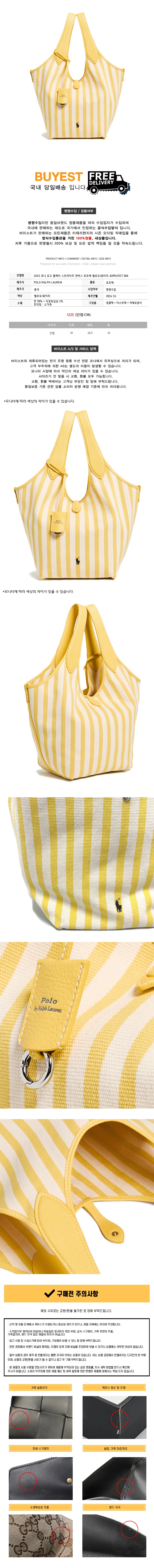 ◆당일◆26SS 포니 로고 플레이 스트라이프 캔버스 토트백 옐로우/화이트 428963527 004