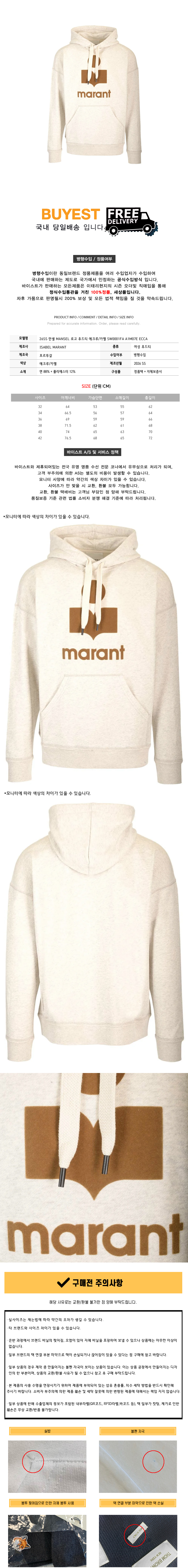 * 모 델 명 : 26SS 만셀 MANSEL 로고 후드티 에크루/카멜 SW0001FA A1M07E ECCA