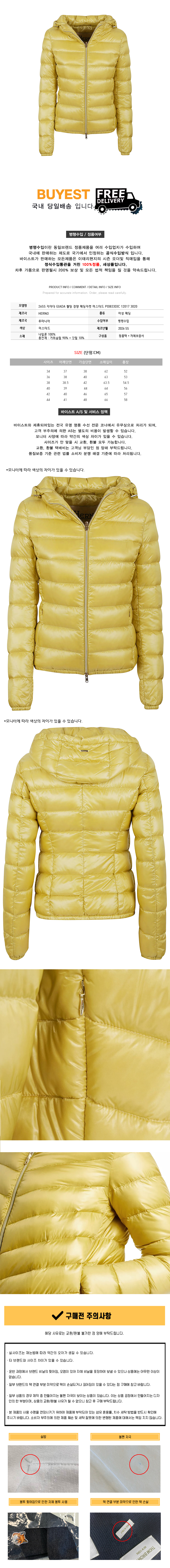 * 모 델 명 : 26SS 지아다 GIADA 퀄팅 경량 패딩자켓 머스타드 PI0833DIC 12017 3020