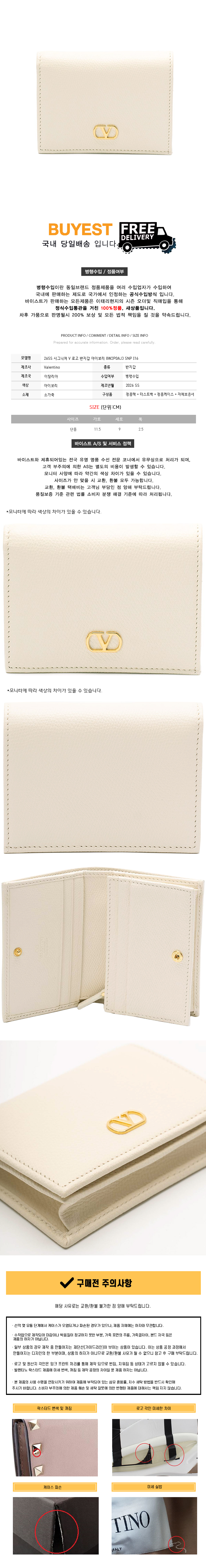 * 모 델 명 : 26SS 시그니처 V 로고 반지갑 아이보리 8W2P0AJ3 SNP I16