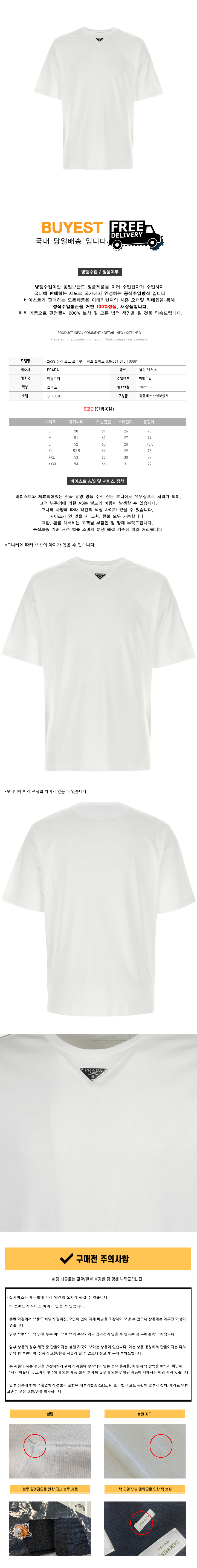 * 모 델 명 : 26SS 삼각 로고 오버핏 티셔츠 화이트 UJN861 240 F0009