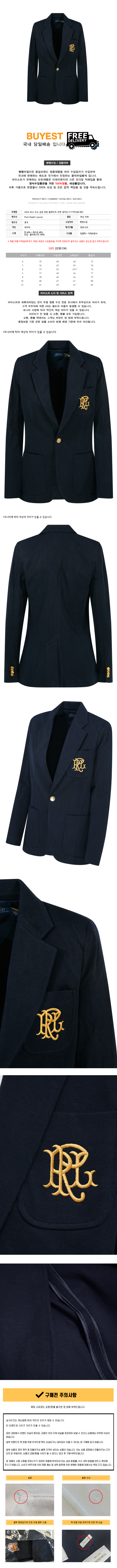 ◆당일◆26SS 로고 자수 금장 버튼 블레이저 자켓 네이비 211795348 002