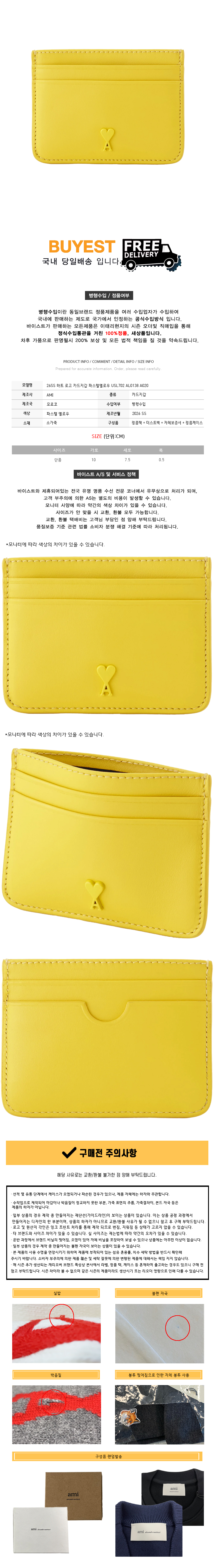 * 모 델 명 : 26SS 하트 로고 카드지갑 파스텔옐로우 USL702 AL0138 A020