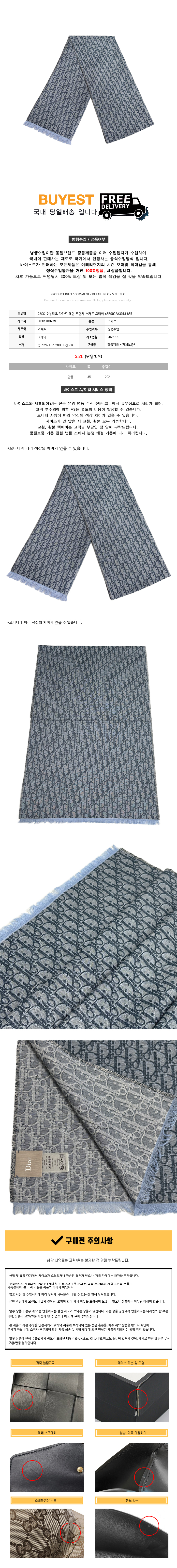 26SS 오블리크 자카드 패턴 프린지 스카프 그레이 68E0002A3013 885