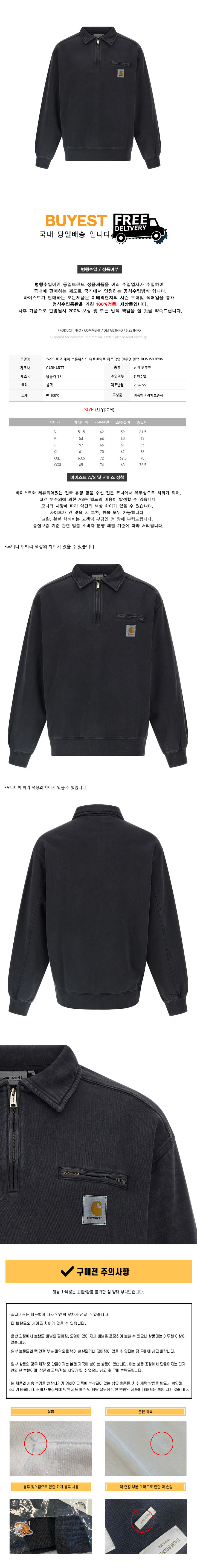 26SS 로고 패치 스톤워시드 디트로이트 하프집업 맨투맨 블랙 I036350 8906